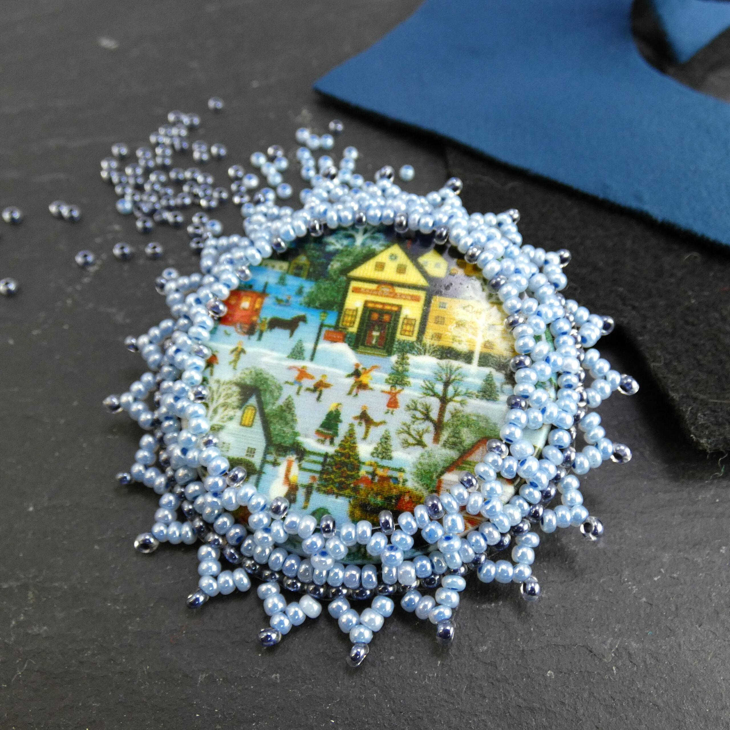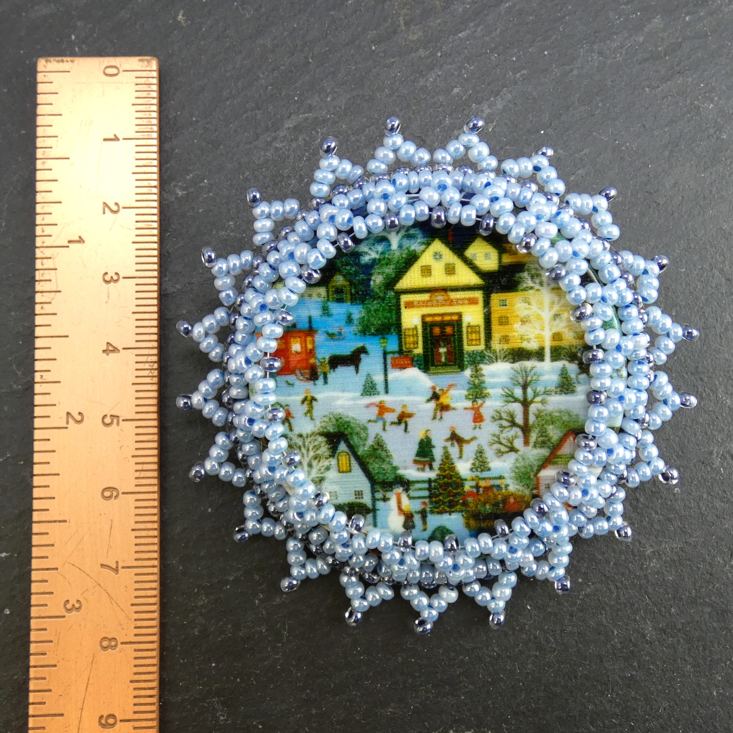 A winter scene captured amid beadwork, wear this brooch to carry a piece of festive joy wherever you go.